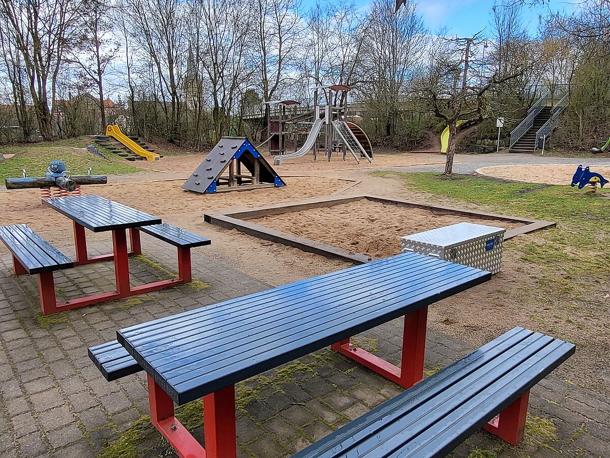 Der Spielplatz unterhalb der Frauenbergbrücke liegt mitten im Ort. Es ist der größte von sieben Spielplätzen. Er ist mit einem großen Klettergerüst, Schaukeln, Hangrutsche, Sandspielfläche und einer Spiellandschaft für Kleinkinder ausgestattet. Außerdem bietet er die Möglichkeit zum Tischtennis- und Fußballspielen.